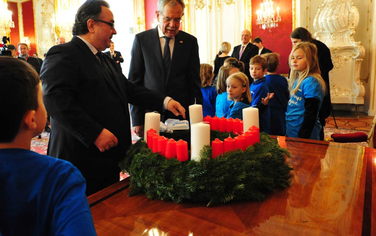 Bischof Bünker stellte dem Bundespräsidenten in einer kurzen Ansprache die Geschichte des originalen Diakonie-Adventkranzes vor, der im 19. Jahrhundert von Johann Hinrich Wichern in einer Diakonie-Einrichtung in Hamburg erfunden worden war. Den Kindern der Einrichtung sollte durch das vorweihnachtliche Anzünden einer Kerze pro Tag das Warten auf den Heiligen Abend erleichtert werden. Von daher auch Bünkers abschließender Appell an Van der Bellen: „Am wichtigsten sind die Kinder! Für sie wurde der Adventkranz erfunden. Uns Erwachsene erinnert er an die Verantwortung, die wir in Politik, Diakonie und Kirche und auch privat für die Kinder tragen.“