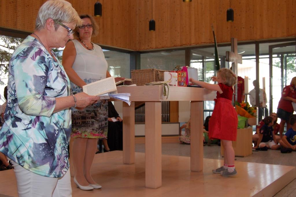 Auch Dechant Christoph Maresch und die Pfardfindergruppe 73 verabschiedeten sich offiziell von Familie Marx wie auch die Pfarrgemeinde, deren Vertreterinnen und Vertreter auf besonders persönliche Weise und mit so manchem Geschenk „Auf Wiedersehen“ sagten. Hoffnungsvoll will die Gemeinde nun in die Zukunft aufbrechen – wenn auch erst einmal ohne eigene/n PfarrerIn. Hoffnungsvoll steuert auch Familie Marx ihrem nächsten Abendteuer nach sechs Jahren „Arche“ entgegen.