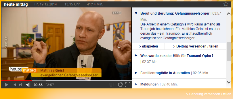 Gleich zwei Beiträge rund um die Gefängnisseelsorge und Pfarrer Dr. Matthias Geist hat der ORF 2 am 19. Dezember ausgestrahlt. Beide Beiträge können noch für eine kurze Zeit nachgeschaut werden und zwar hier: