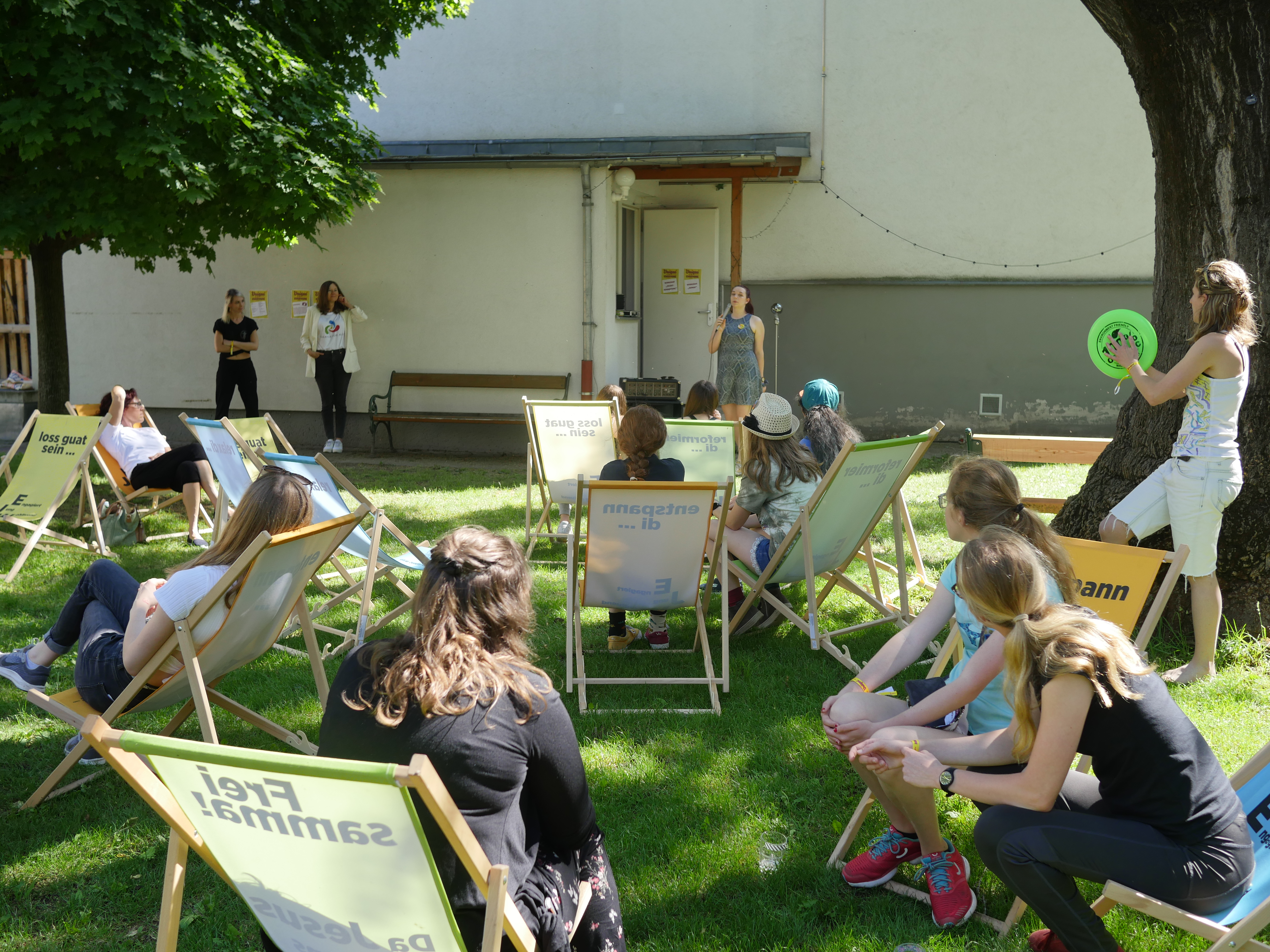 So eingestimmt, positiv aufgeladen und miteinander ins Gespräch gebracht, gab es nach zwei Workshoprunden für die Mädels und jungen Frauen eine kulinarische Stärkung mit vegetarischem, warmem Essen. Die Köstlichkeiten waren die perfekte Basis, um den Abend in entspannter Festival-Atmosphäre im Liegestuhl im Pfarrgarten mit einem (alkoholischen oder nicht-alkoholischen) Cocktail ausklingen zu lassen.