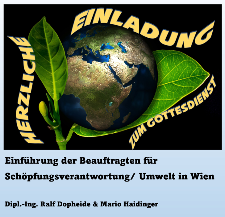 Herzliche Einladung zur Einführung und Entpflichtung der Beauftragten für Schöpfungsverantwortung/ Umwelt in Wien am Sonntag, 10. März 2024, um 09.30 Uhr, in der Bekenntniskirche Wien-Donaustadt (Erzherzog-Karl-Straße 145, 1220 Wien).