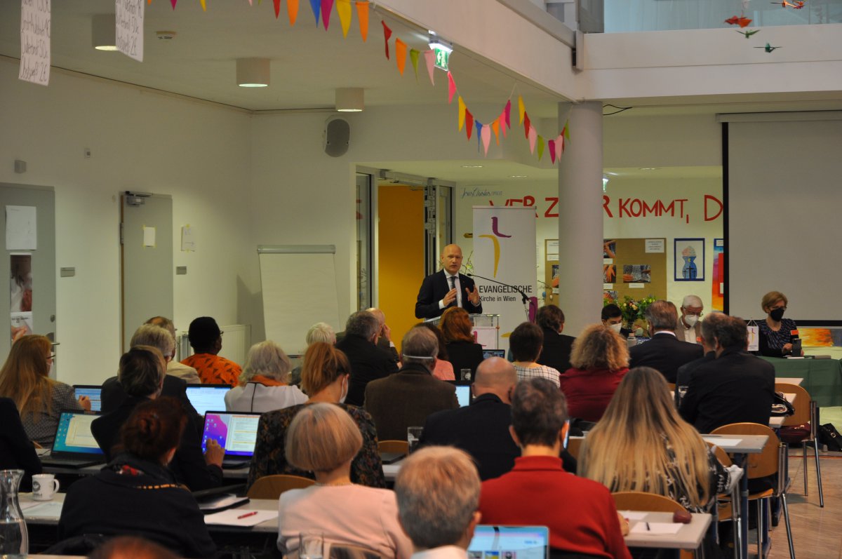 Das „Parlament“ der Evangelischen Kirche A.B. in Wien – die sogenannten „Superintendentialversammlung“, zusammengesetzt aus Haupt- und Ehrenamtlichen, tagte am Samstag, 23. April 2022, im Evangelischen Gymnasium Simmering.
