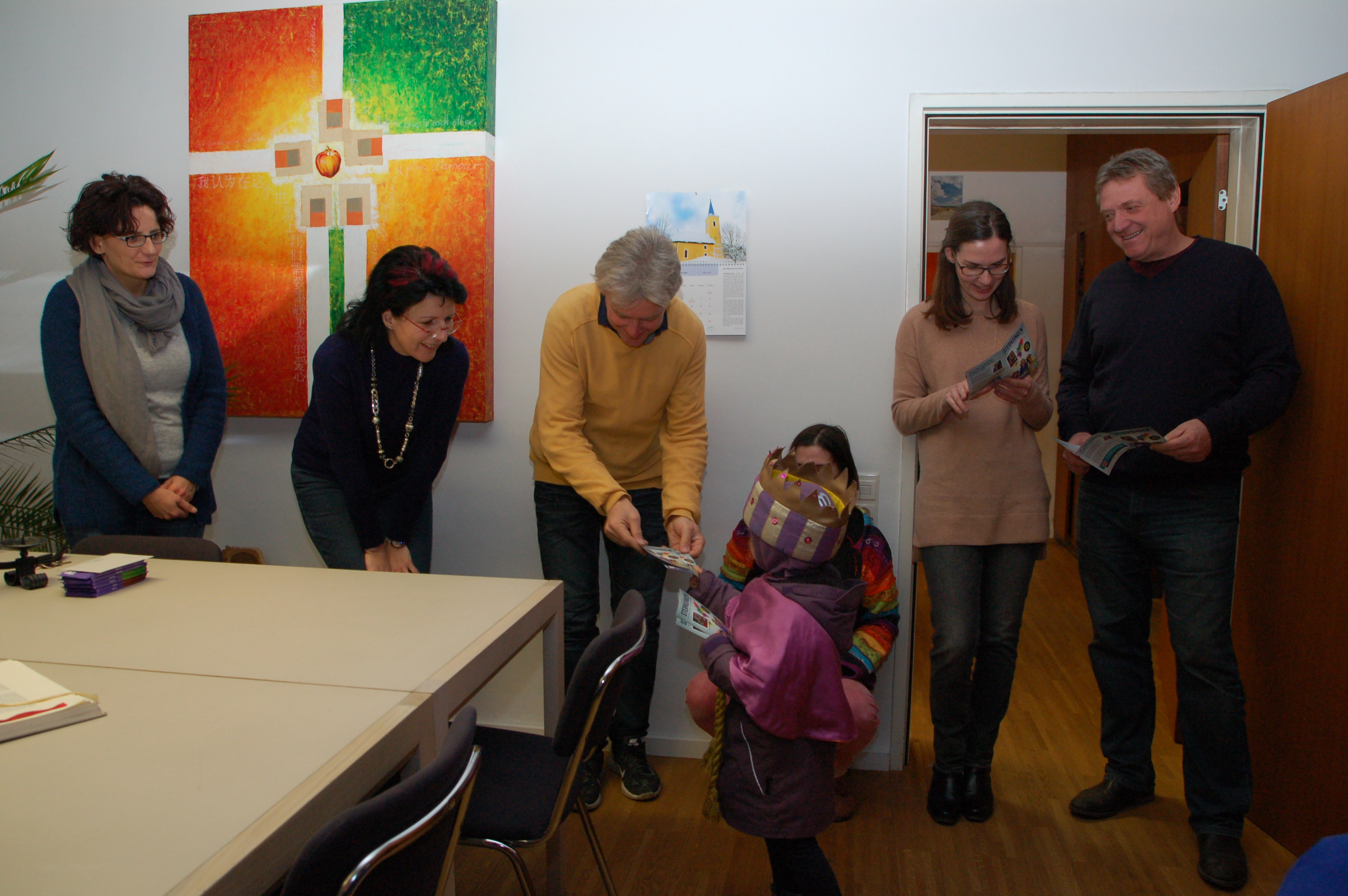 Segenswünsche für das neue Jahr brachte am Montag, 9. Jänner, eine Sternsingergruppe der Pfarre Auferstehung Christi (5. Bezirk) in die Evangelische Superintendentur A.B. Wien. „Die Friedensbotschaft soll Hoffnung euch spenden und alles zum Guten wenden“, wünschte der Balthasar der Gruppe, der eigentlich Tobias heißt, den versammelten Angestellten sowie Superintendent Hansjörg Lein und Superintendentialkuratorin Inge Troch.