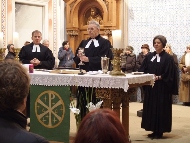 Fast 500 Jahre zurück in die Zeit sind die Gottesdienstbesucher in der Gustav-Adolf-Kirche in Wien-Gumpendorf am 29. Jänner gereist. An jenem Sonntag wurde „Luthers Deutsche Messe 1526 – Ein historischer Gottesdienst zum Mitfeiern“ mit Superintendent in Ruhe Werner Horn, Pfarrerin Edith Schiemel und Pfarrer Michael Bickelhaupt gefeiert. Die musikalische Gestaltung übernahmen die Wiener Evangelische Kantorei unter der Leitung von Martin Zeller sowie Diözesankantorin Yasuko Yamamoto an der Orgel. Im Anschluss fand ein spannendes Gottesdienstnachgespräch statt.