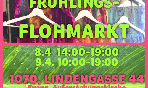 Addresse: AuferstehungskircheLindengasse 44a1070 WienDienstag, 9 April 2024 - 10:00vormittags bis 7:00nachmittagsFrühlings-Flohmarkt